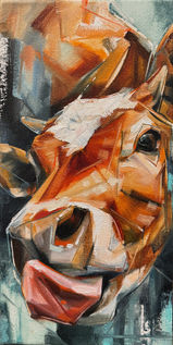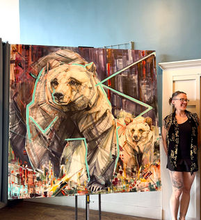 Broken down into fractal geometric shapes in order to produce a vibration of color and line that mimic movement. I am attempting to capture the ever shifting nature of life and interconnected energy that animates everything.